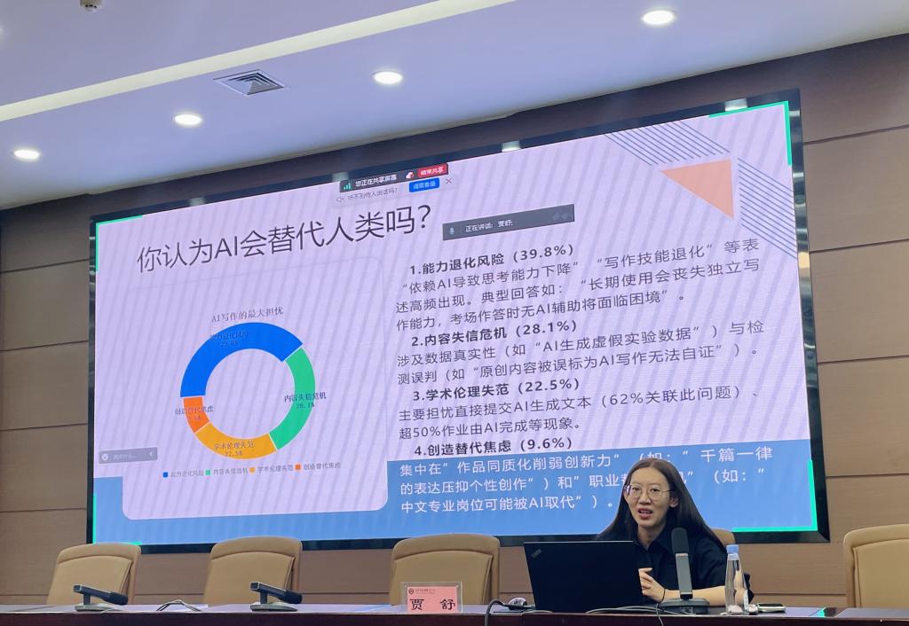 贾院长紧密围绕当前包头师范学院本科毕业论文(设计)进度和教育部本科毕业论文抽检背景,以本科毕业论文(设计)写作撰写规范、注意事项、写作资源、学术诚信、AI模型的运作原理、提示词的撰写规则等方面为主要内容,运用生动的图示和案例对毕业生和毕业论文指导教师现阶段关心的写作困惑等问题进行了深入详细的讲解,并强调要坚守学术诚信,认识AI的辅助性地位,合理利用AI工具。